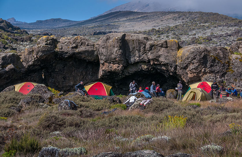 A steep climb up the eastern wall leads us just below the Heim Glacier, where we may have some spectacular views of Kilimanjaro. We then take a steep exit up the Great Barranco Wall, which divides us from the southeastern slopes of Kibo, the trail continues down into the alpine desert of the Karanga Valley, finally we have a steep climb up to Karanga Camp.