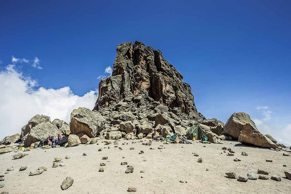 Today’s route turns east into a semi desert and rocky landscape surrounding Lava Tower. Lunch will be served in a designated area before ascending the rocky path to Lava Tower. After lunch you descent again to the Barranco camping area and after reaching the high altitude of 4600m at Lava Tower, you will feel actual benefit of acclimatization. This descent to Barranco camp takes about 2 hours and offers great opportunities to take some beautiful photographs of the Western Breach and Breach Wall.